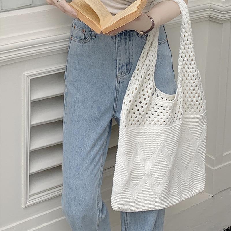 Винтажная ажурная тканая сумка через плечо, вязаная сумка для женщин, большая вместимость, сумка-шоппер, женская пляжная дорожная сумка 35x35cm белый