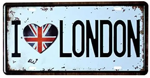 Винтажная бирка для авто, номерной знак, металлический знак, я люблю Лондонское украшение, ретро жестяной знак x дюймов