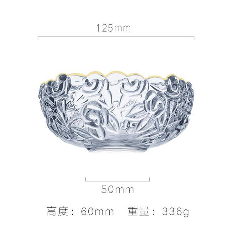 Винтажная гравировка Прозрачная стеклянная салатница с золотым краем Десертная фруктовая миска для овсянки Кухонная миска для супа и лапши Рельефное ремесло