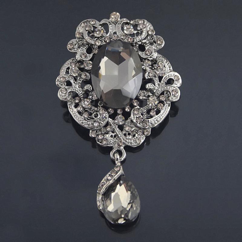 Винтажная европейско-американская брошь-капля из черного драгоценного камня с роскошными стразами