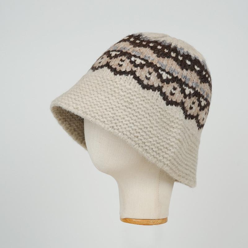 Винтажная жаккардовая вязаная шапка-рыбак, женская осенне-зимняя панама, теплая шерстяная шапка, шапка-тазик бежевый