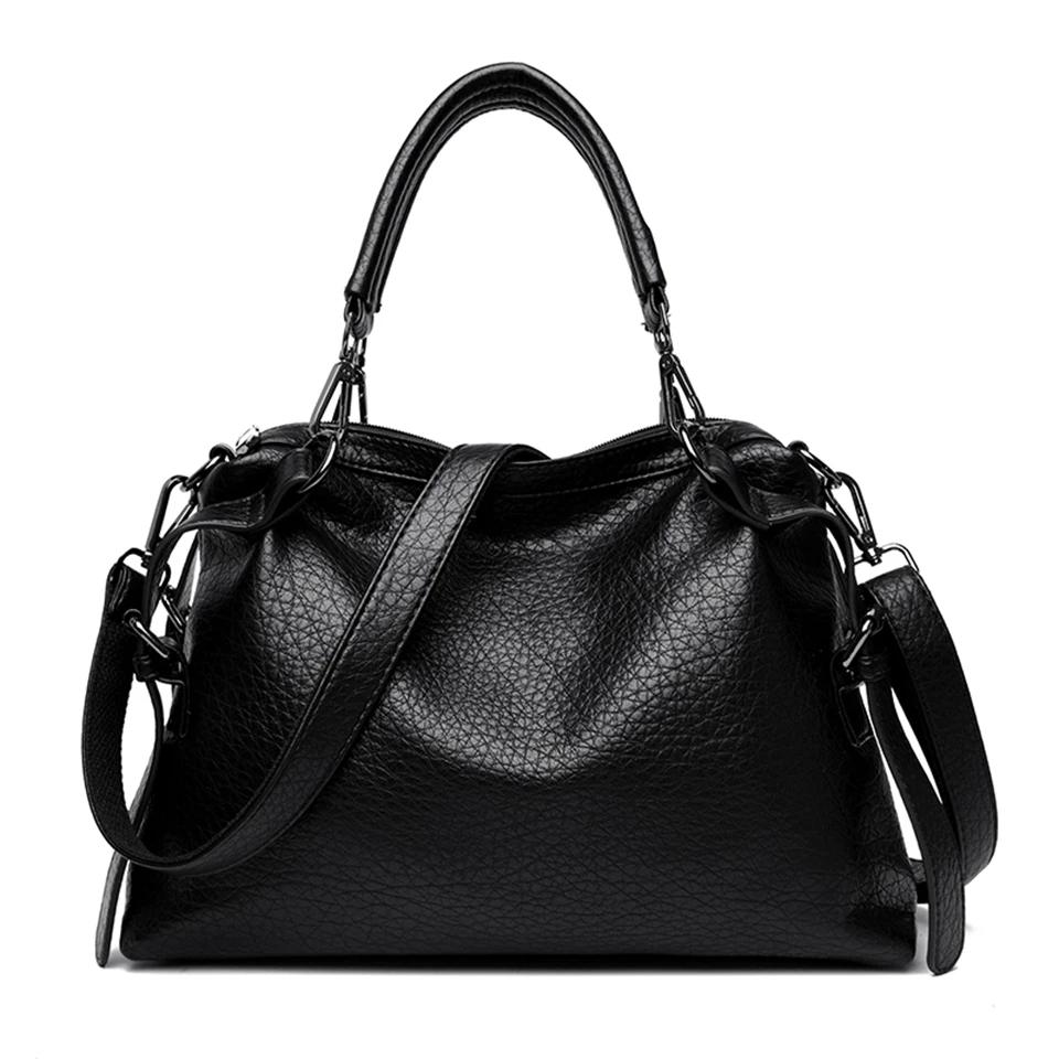 Винтажная женская сумка из мягкой кожи известного бренда, большая вместительная сумка-тоут, женские сумки через плечо чёрный