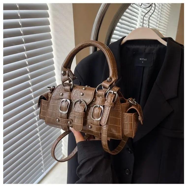 Винтажная заклепочная розовая сумка-мессенджер для женщин в стиле ретро с крокодиловым узором, женская горячая женская сумка через плечо с ручкой, шикарная