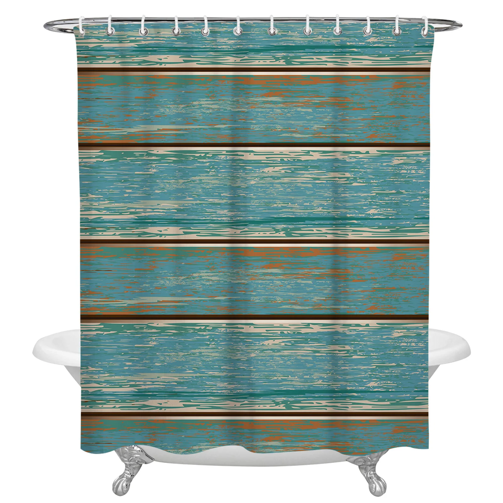 Винтажная занавеска для душа с текстурой древесины, водонепроницаемая занавеска для ванной из полиэстера, занавеска для ванной с крючком