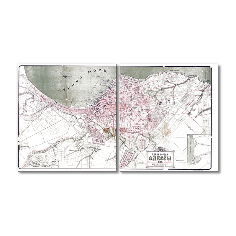 Винтажная карта Artel «План города Одессы 1917 года» 2 модуля 70x105 см