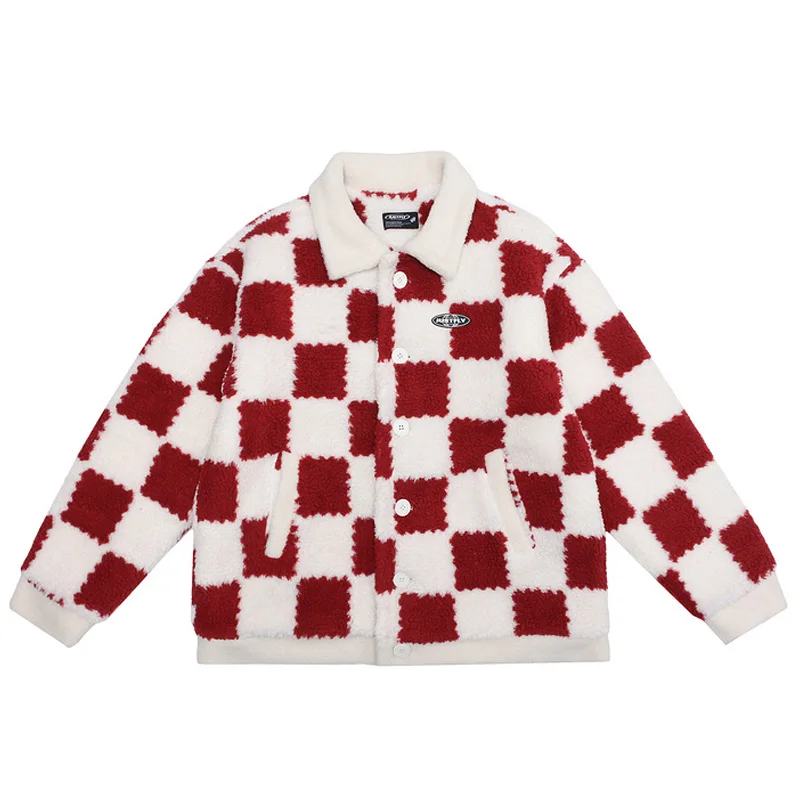 Винтажная клетчатая флисовая куртка унисекс в стиле Харадзюку из овечьей шерсти с принтом, уличная одежда унисекс, мужские толстые ретро Ку...