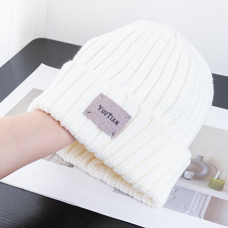 Винтажная кожаная шапка с этикеткой, женские осенне-зимние шапки, теплые вязаные шапки в полоску one size молочный белый