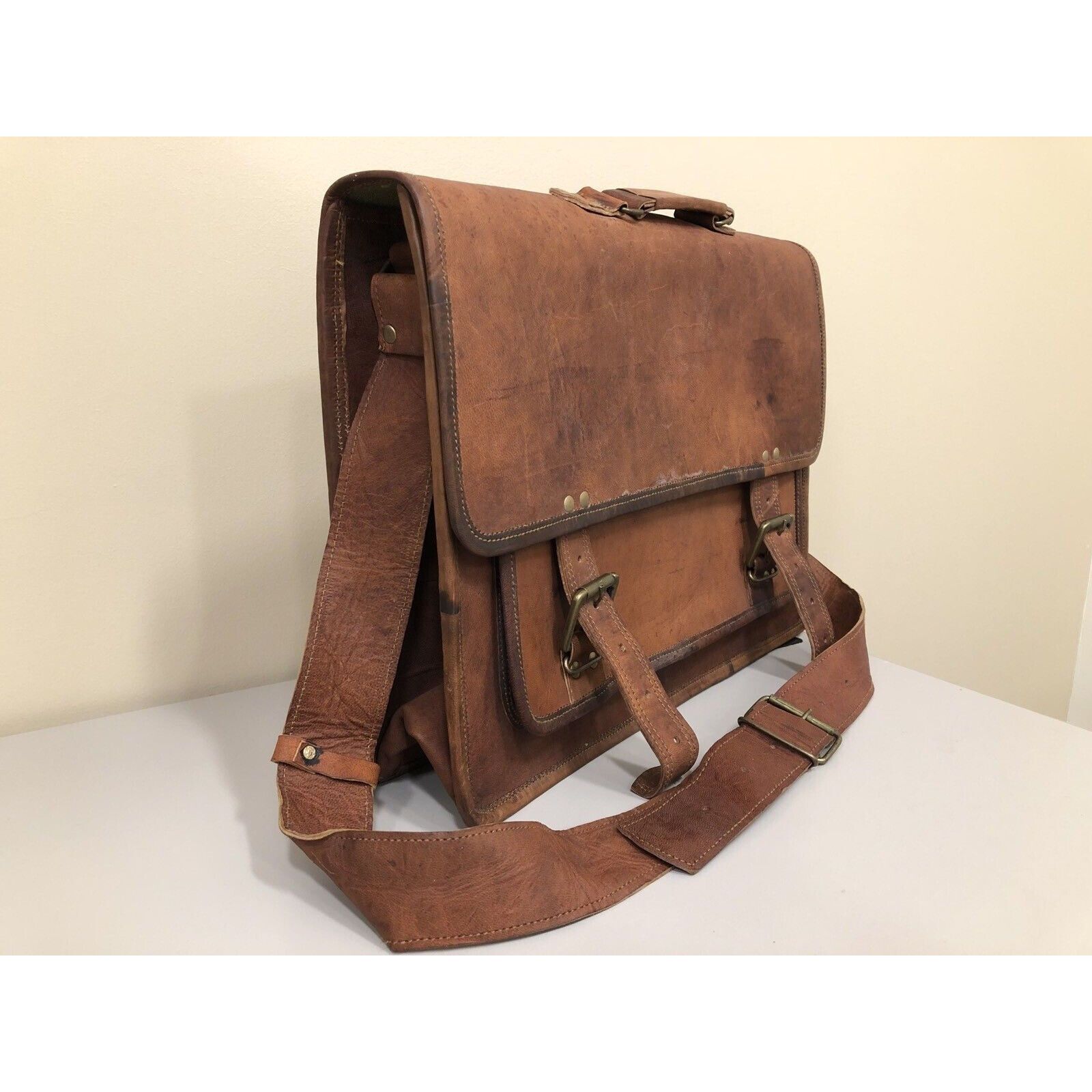 Винтажная коричневая мужская большая офисная сумка для ноутбука, кожаный портфель, сумка-мессенджер 13 x 17 x 5 in коричневый