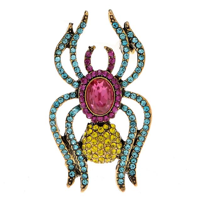 Винтажная красочная брошь-паук со стразами, маленькая модная булавка с изображением насекомых, 4 цвета в наличии, высокое качество, новинка 2023 года