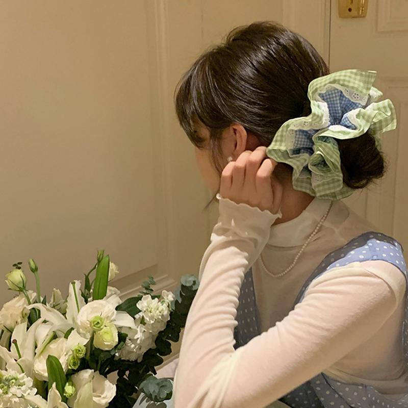 Винтажная кружевная петля для волос с цветком и завитыми краями, четырехслойная эластичная клетчатая повязка на голову, милые аксессуары для волос с толстым кишечником