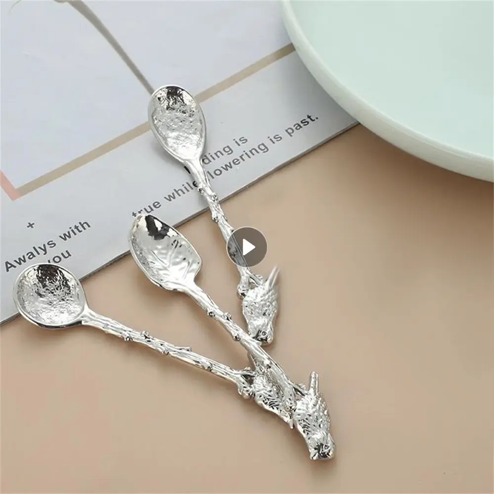 Винтажная ложка для посуды, кухонные приспособления из цинкового сплава в стиле ретро, десертная ложка для мороженого, креативная кофейная ложка с лесными птицами