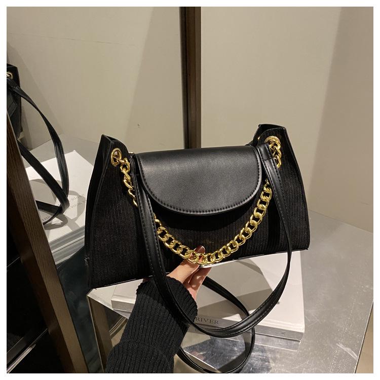Винтажная матовая зимняя текстурированная цепная сумка через плечо для женщин на 2024 год чёрный
