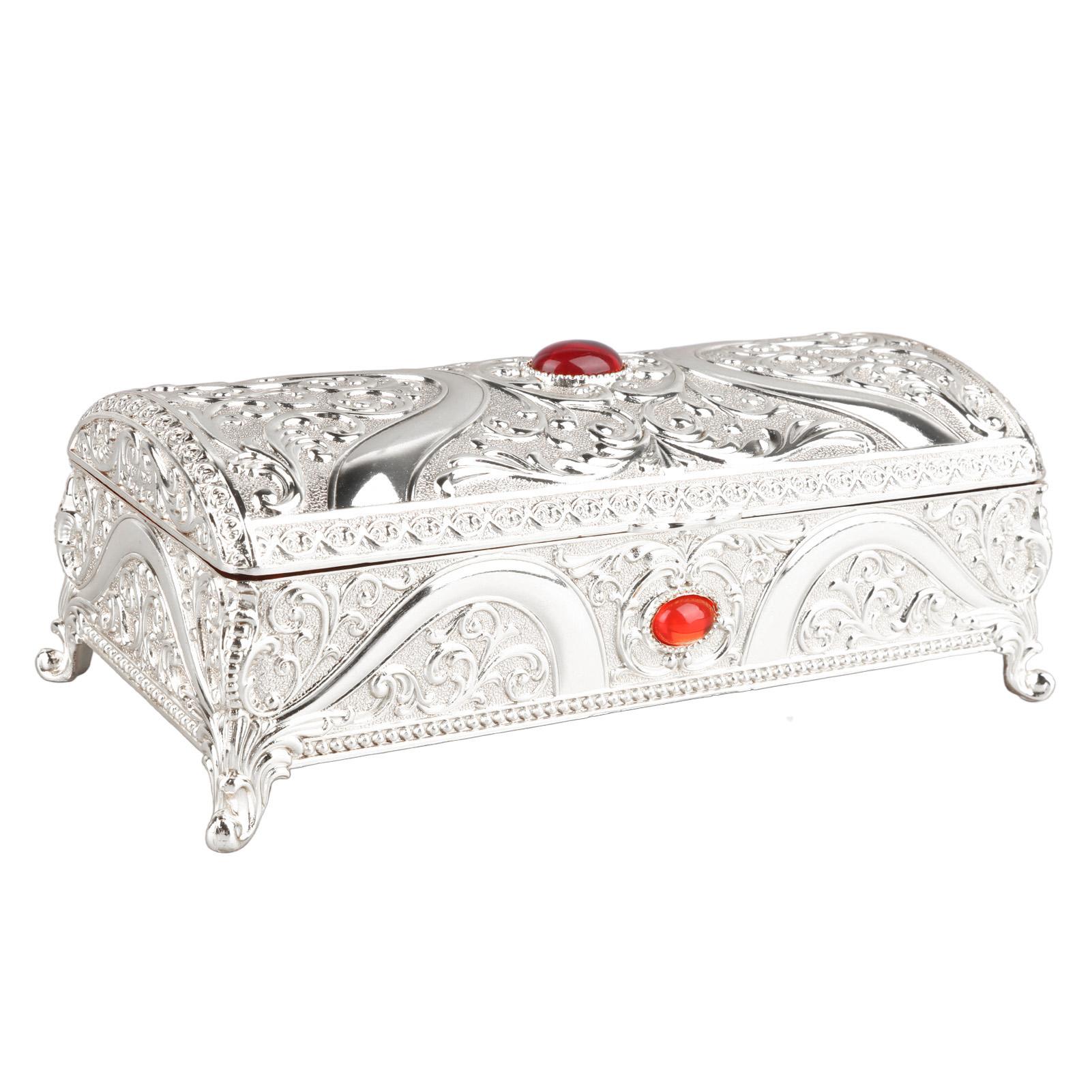 Винтажная металлическая шкатулка для украшений, прямоугольная, с нежным узором, шкатулка для безделушек с мягким бархатом для колец серебряный