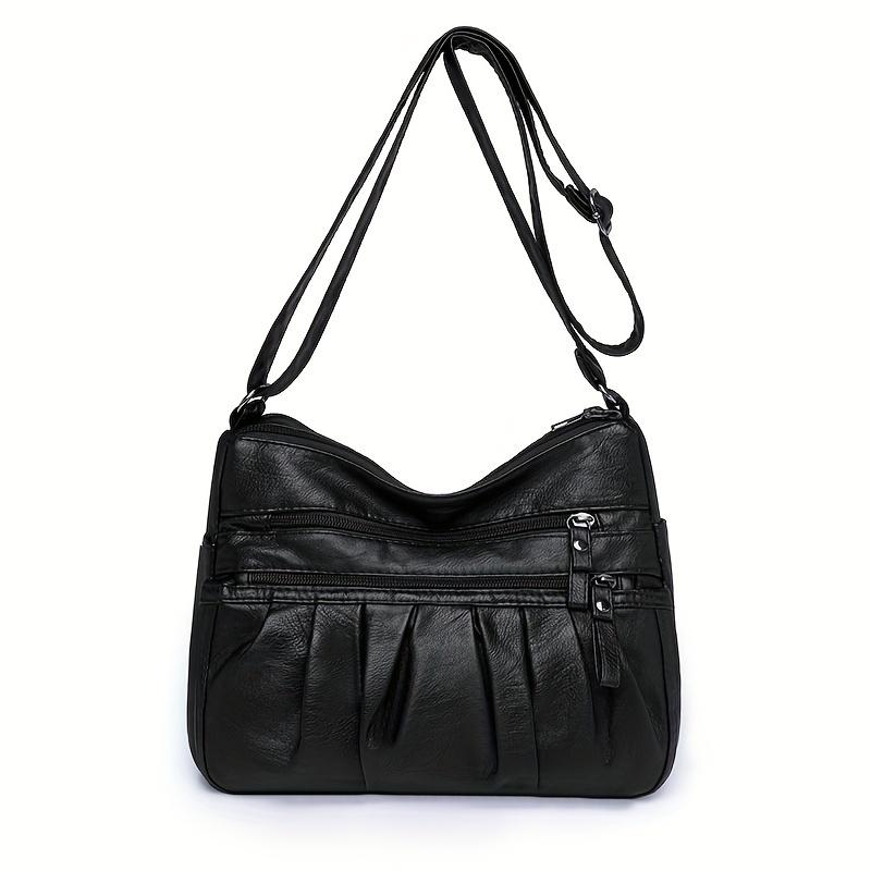Винтажная многослойная сумка через плечо, ретро-сумка через плечо из ПУ, женская модная сумочка и кошелек чёрный