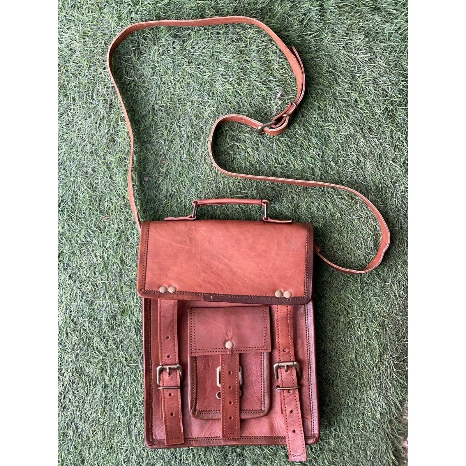 Винтажная мужская новая сумка-портфель ручной работы из козьей кожи с регулируемым плечевым ремнем 11 x 9 x 4 in коричневый