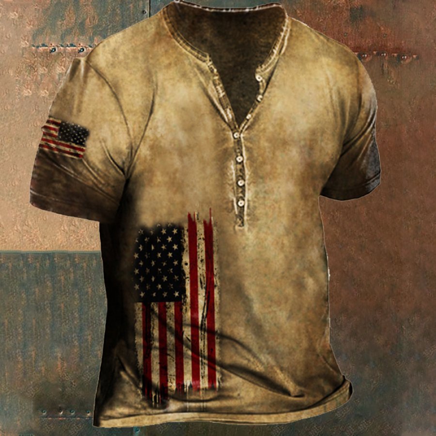 t-shirts,винтажная мужская тактическая футболка henley с коротким рукавом с принтом американского флага