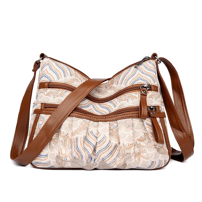 Винтажная мягкая кожаная сумка-мессенджер с принтом в стиле пэчворк, женская сумка через плечо большой вместимости, сумка для мамы 1060-6