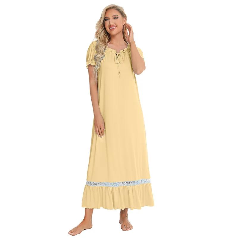 Винтажная ночная рубашка женская свободная спальная рубашка длинная ночная рубашка одежда для сна ретро викторианская женская ночная рубашка S жёлтый