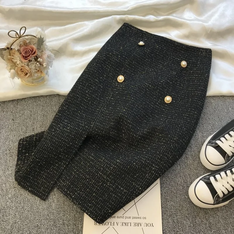 Винтажная облегающая черная клетчатая юбка с высокой талией и запахом, женские твидовые юбки, корейские шикарные темпераментные белые секс...
