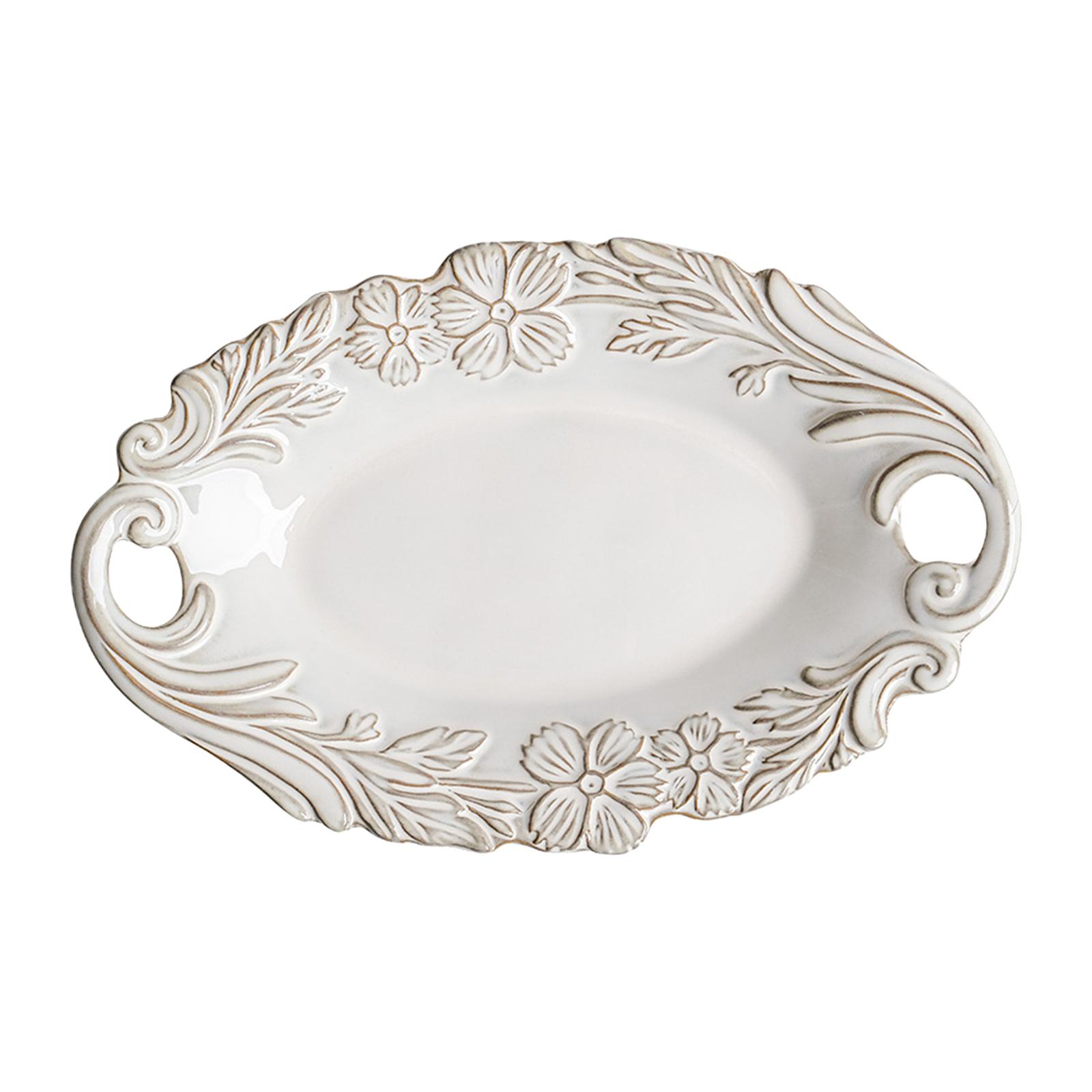 Винтажная рельефная посуда в дворцовом стиле Керамическая обеденная тарелка Керамическая тарелка Украшение в винтажном стиле Европейская десертная мелкая тарелка