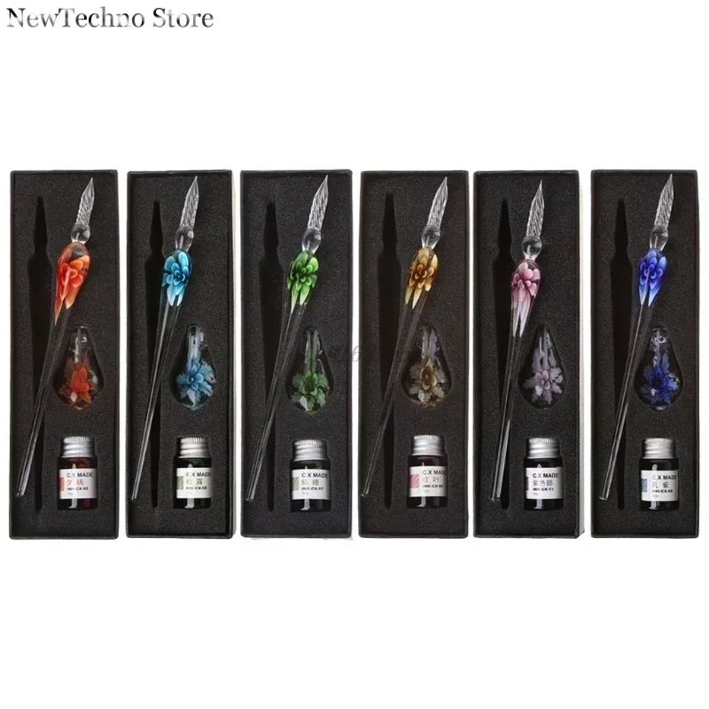 Винтажная ручная работа, элегантная Хрустальная Цветочная стеклянная ручка, значок, чернильные ручки, подарки, фотоканцелярские принадлежности