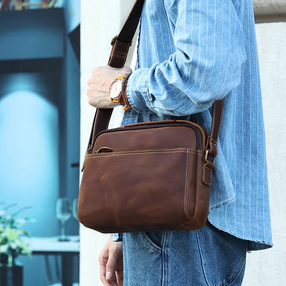 Винтажная сумка почтальона из кожи Крейзи Хорс, мужская спортивная сумка через плечо из натуральной кожи Крейзи Хорс