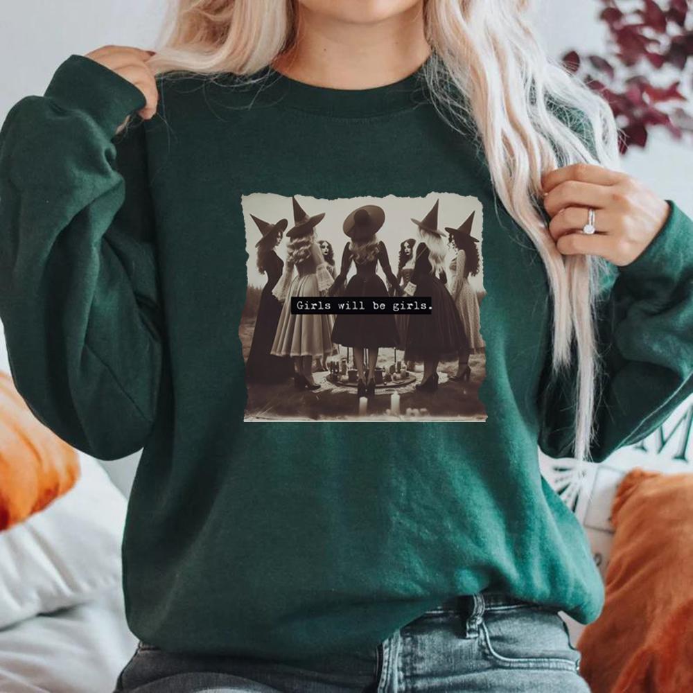 Винтажная толстовка Girls Will Be Girls Witch, забавная толстовка с изображением ведьмы, женская толстовка на Хэллоуин, длинный рукав, пуловер с капюшоном Witchy XXXL темно-зеленого