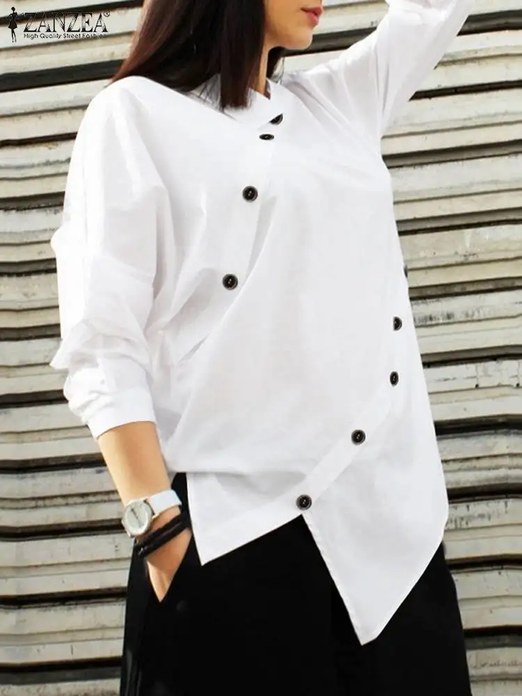 Винтажная уличная одежда ZANZEA, топы в стиле пэчворк, модная Асимметричная рубашка, женская блузка с длинным рукавом, праздничные туники с дек...
