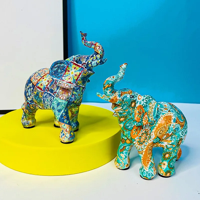 Винтажная цветная статуя слона, аксессуары для домашнего декора гостиной, украшение для комнаты, книжный шкаф, украшение, статуэтка животного из смолы, ремесла