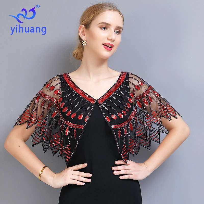 Винтажная шаль с блестками, накидки в стиле 1920-х Гэтсби, вечернее платье, накидка, Свадебные Шали, болеро, Хлопушка, накидка