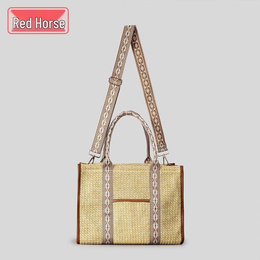 Винтажная этническая соломенная пляжная сумка-тоут: Женская летняя сумка большой вместимости с широким плечевым ремнем хаки