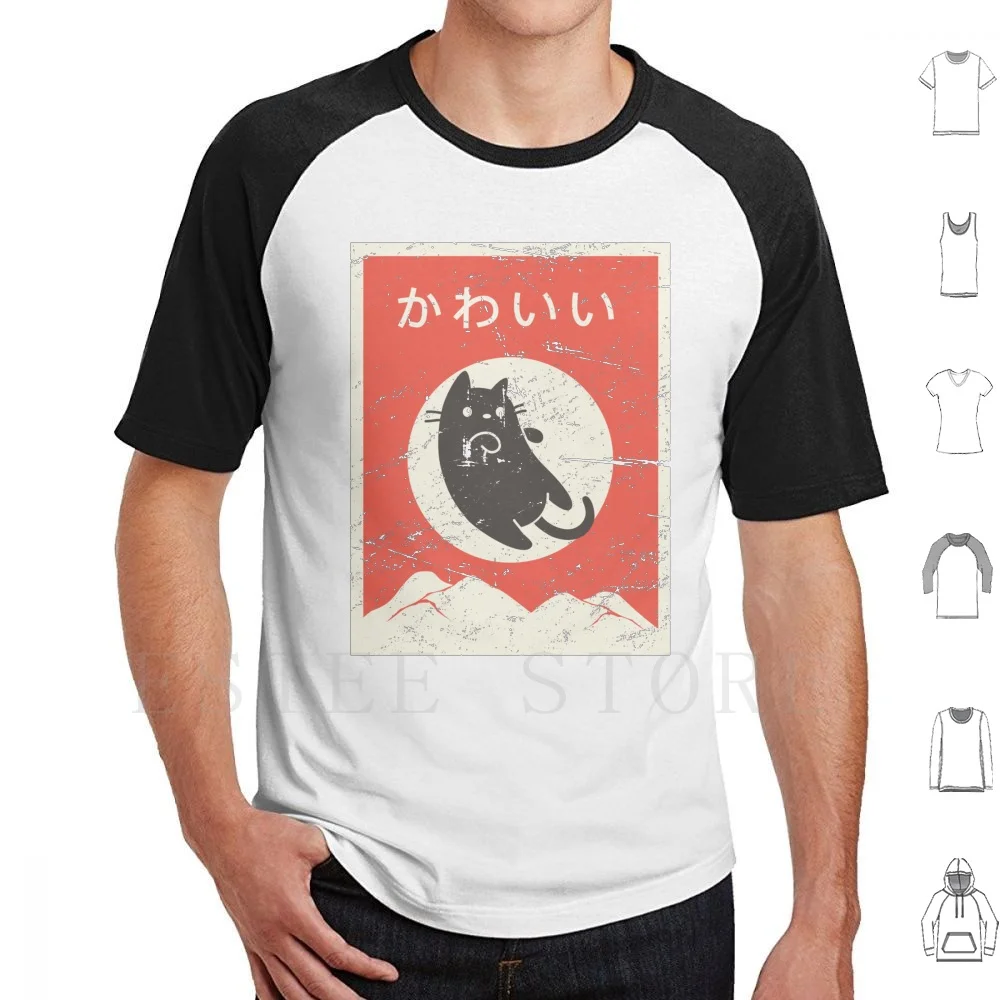 Винтажная японская футболка «Kawaii» с аниме-кошкой, Хлопковая мужская футболка «сделай сам» с принтом Аниме Манга, кошка, котенок, кавайная ви...