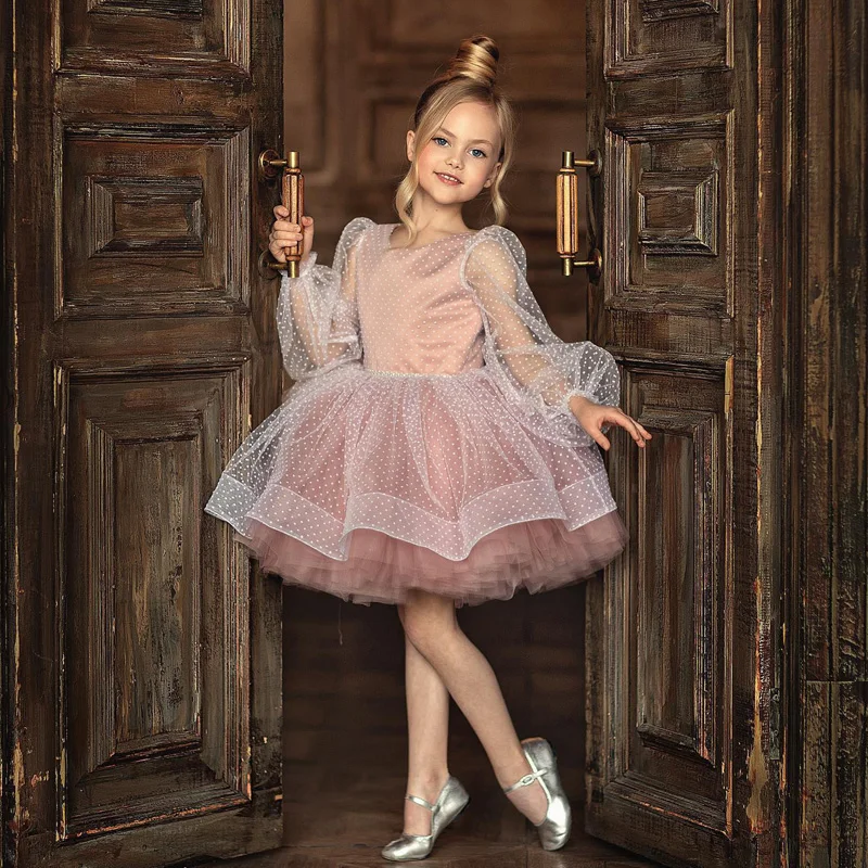 Винтажное Тюлевое платье в горошек, с круглым вырезом и рукавами-фонариками