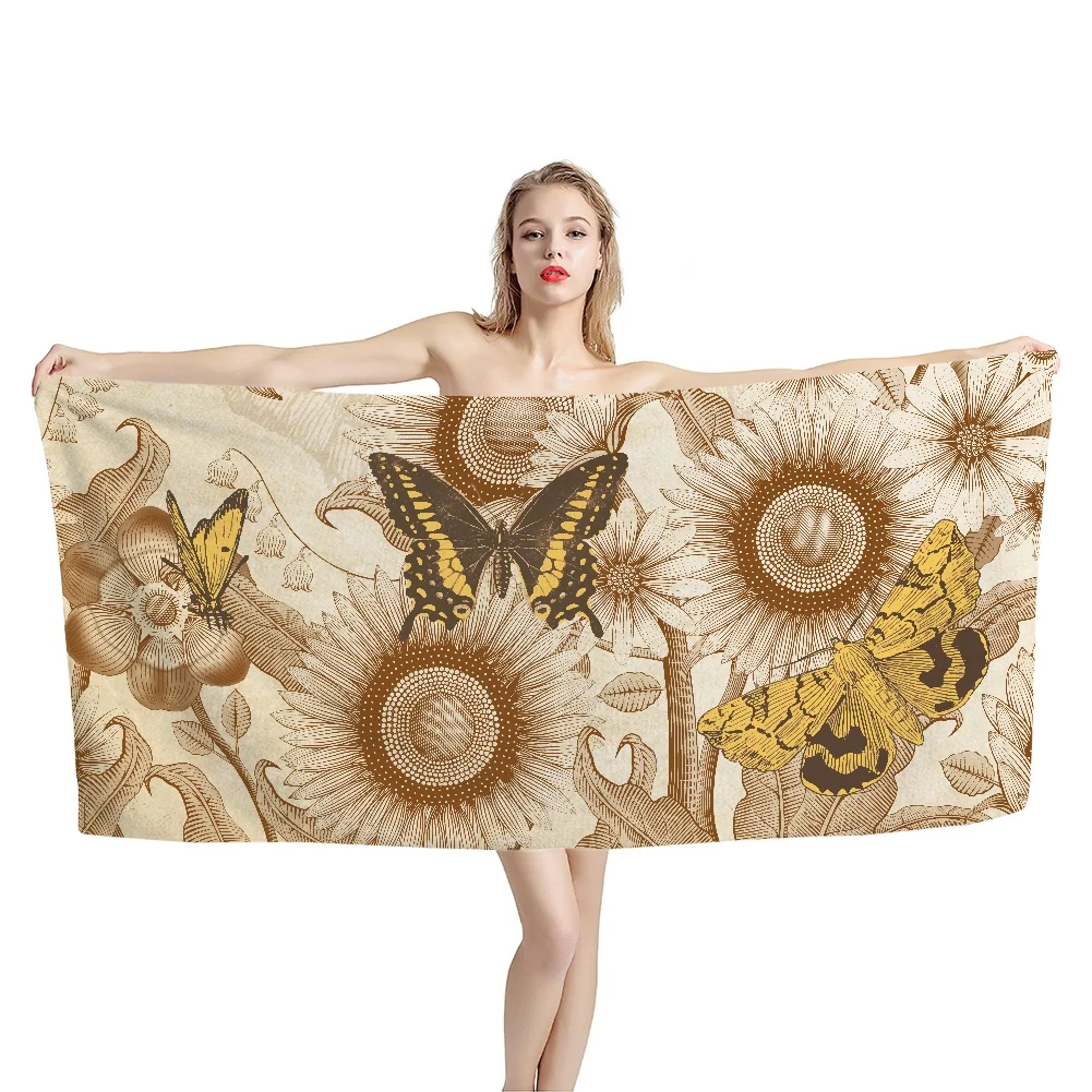 Винтажное банное полотенце s, Подсолнухи, бабочки, принт, аксессуары для ванной, Большое пляжное полотенце, индивидуальное искусственное полотенце s