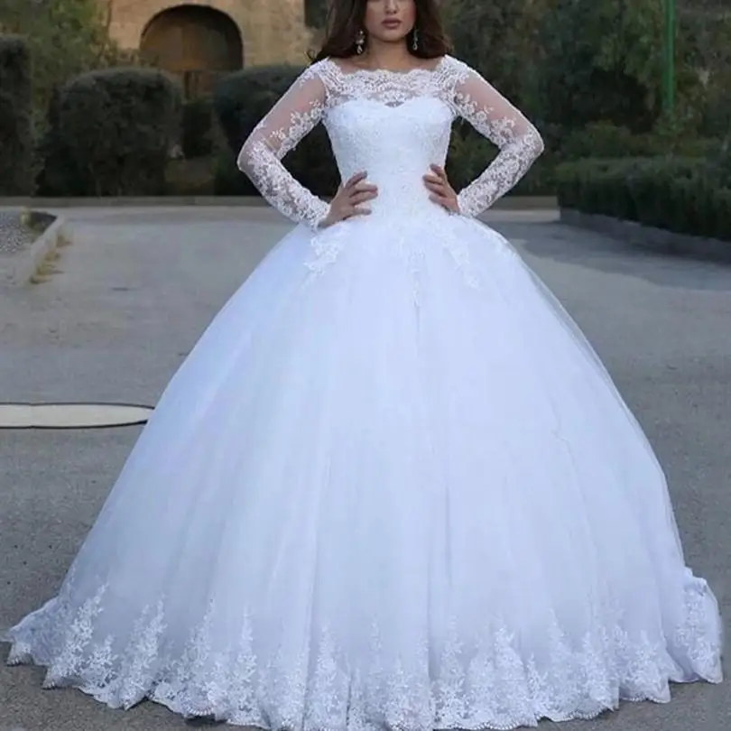 Винтажное кружевное свадебное платье принцессы фатиновое платье с длинным рукавом