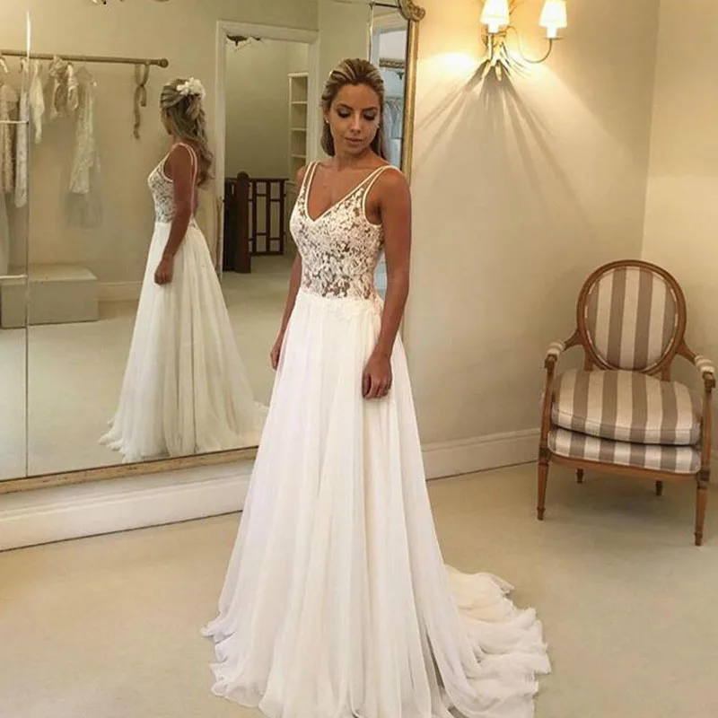Винтажное кружевное свадебное платье с V-образным вырезом, ТРАПЕЦИЕВИДНОЕ женское платье в стиле бохо, свадебное платье на заказ