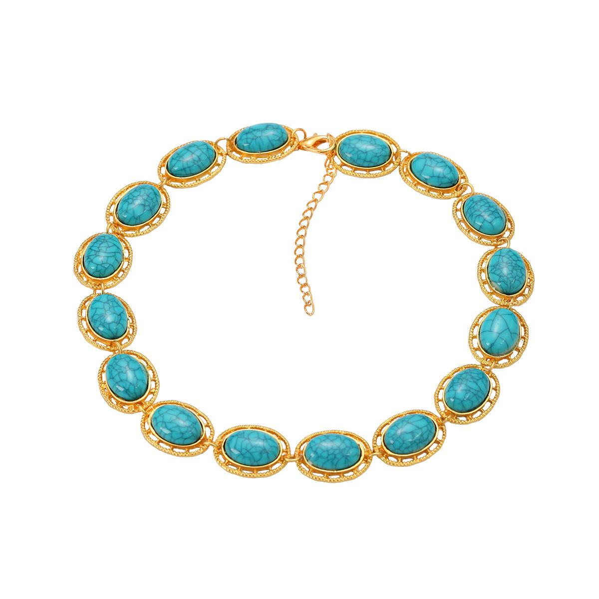 Винтажное овальное геометрическое каменное ожерелье в дворцовом стиле, цепочка на ключицу