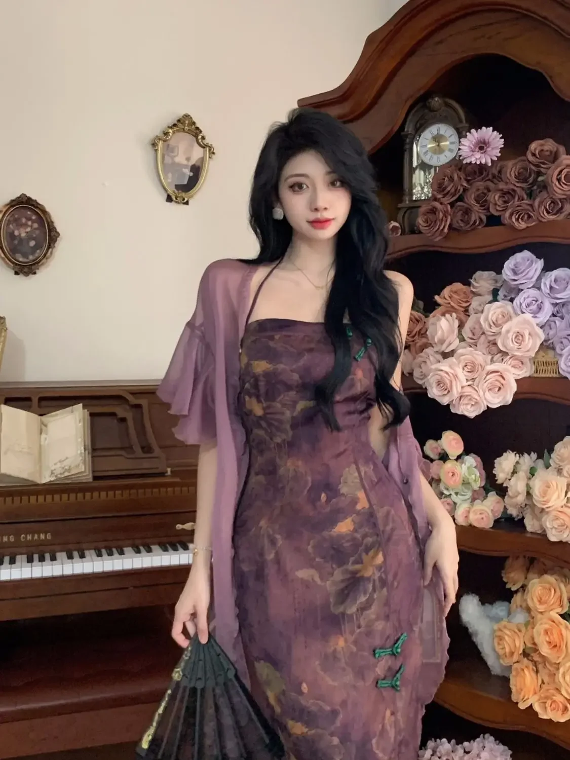 Винтажное платье-Ципао с лямкой на шее и талией в стиле кантри, платье большого размера, Новинка лета 2024