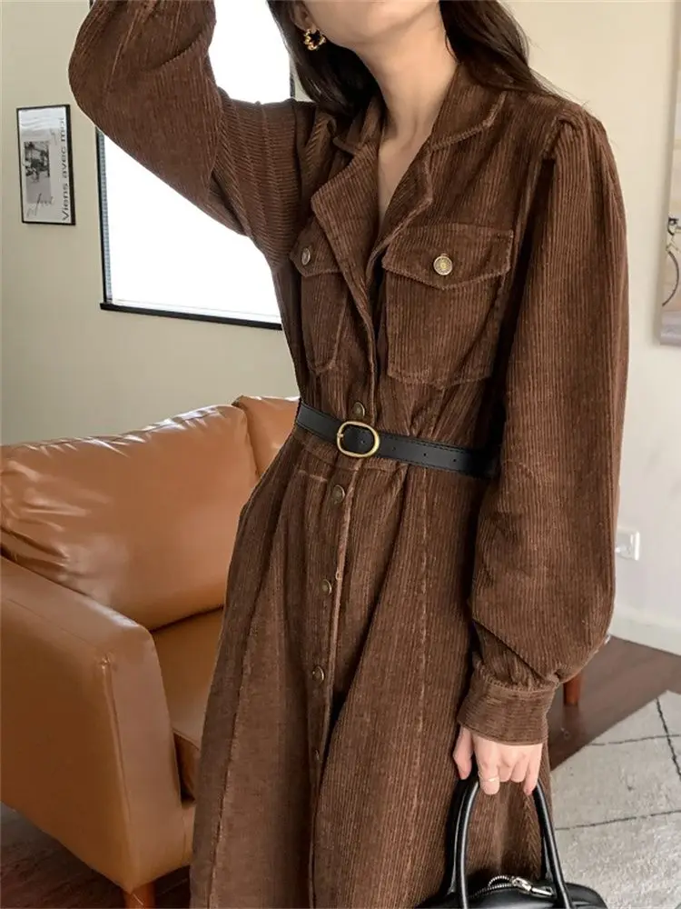 Винтажное плотное вельветовое женское длинное платье HziriP, теплое весеннее праздничное повседневное офисное платье с высокой талией, новин...
