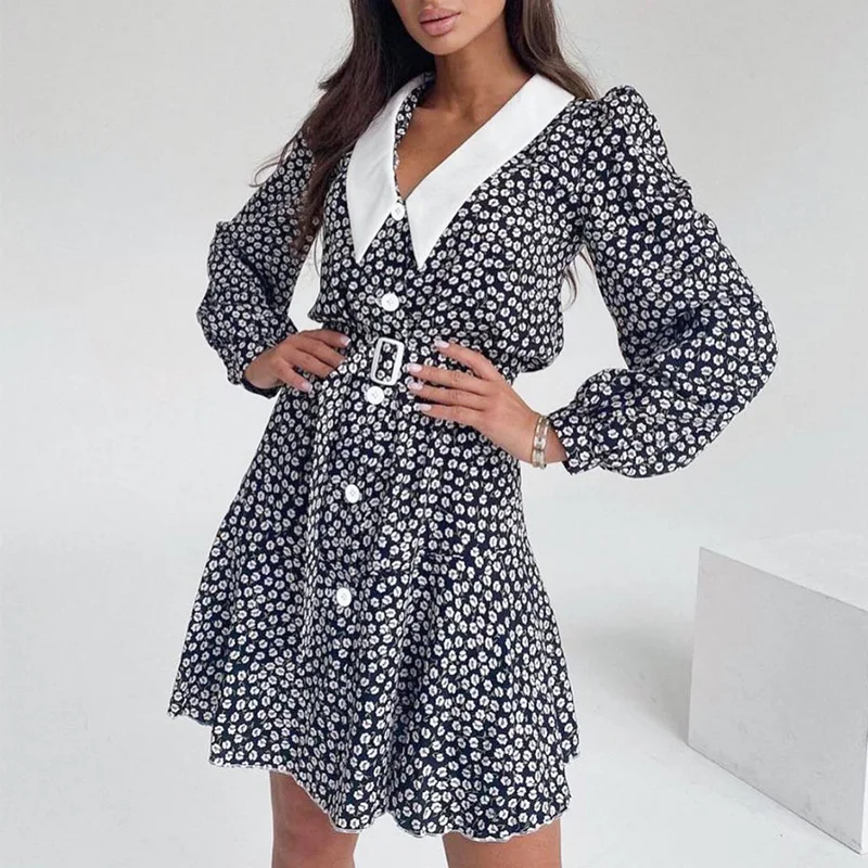 womengaga plus size mini party dres's summer bandage puff sleeves high waist floral dresses vintage qa7 210603, Black;gray