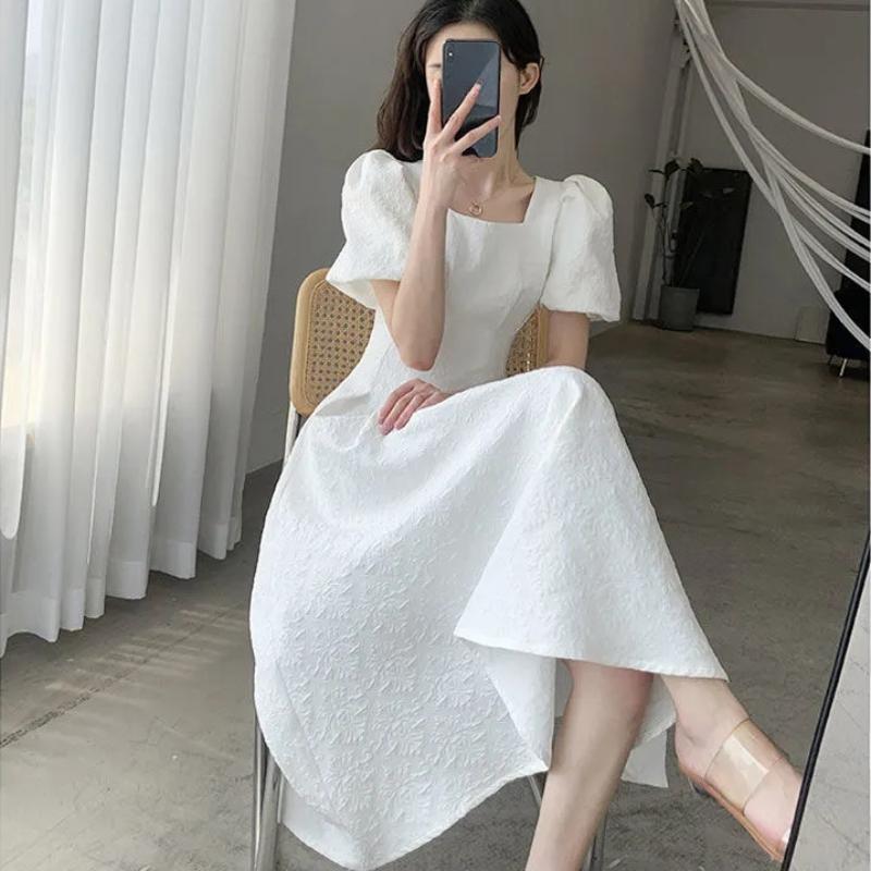 Винтажное элегантное платье с запахом, женское французское ретро черное платье миди с пышными рукавами и квадратным воротником, летняя мода, однотонное Kpop