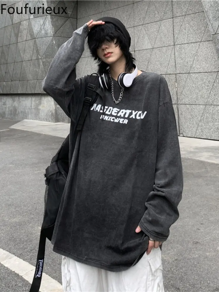 Винтажные Американские Футболки с длинным рукавом, круглым вырезом и принтом надписи