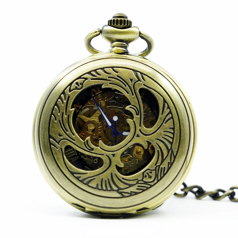 Винтажные Механические карманные часы с гравировкой скелета для мужчин и женщин, персонализированная коллекция, ручной Ветер, часы-брелок, часы