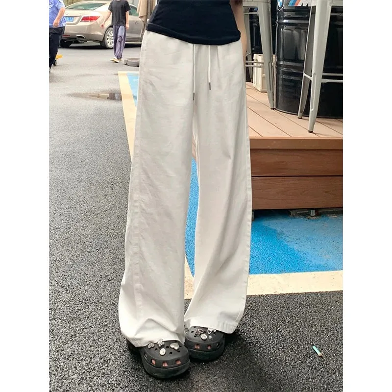 Винтажные мешковатые спортивные брюки Deeptown, женские модные базовые белые брюки с широкими штанинами в Корейском стиле, повседневные летние тонкие брюки, свободные брюки