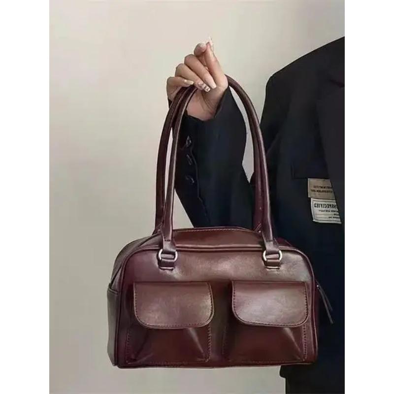 Винтажные нежные элегантные сумки для девочек на ремне, уличная мода, универсальные сумки, женские повседневные однотонные сумки под мышками, эстетичные вино красного