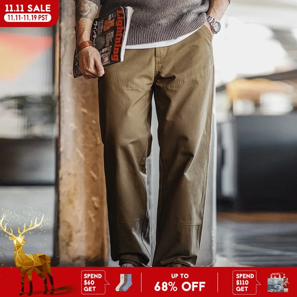 Maden Vintage Solid Logging Pants Versatile Cotton Straight Casual Lumberjack Pants with Zipper Fly and Pockets Trousers for Men