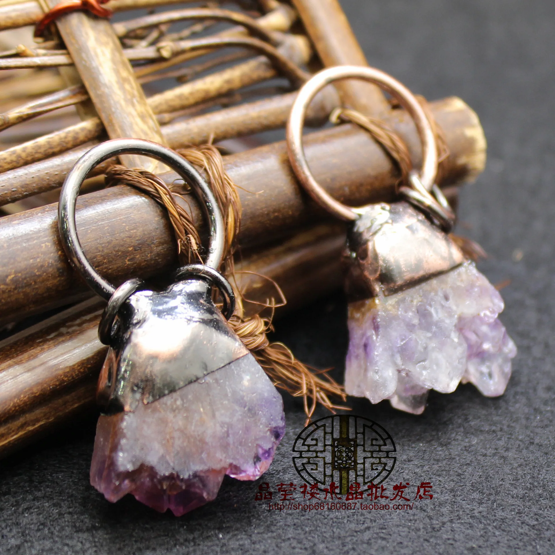 Винтажные подвески в античном стиле с бронзовым покрытием из натурального аметиста, ожерелье с припаянным натуральным кристаллом
