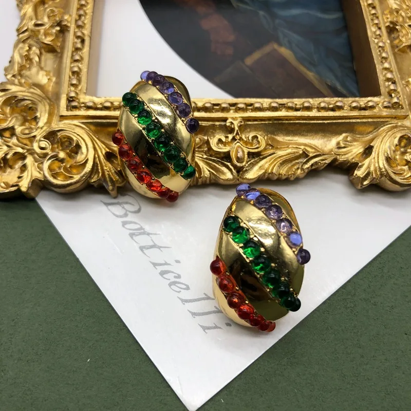 Винтажные позолоченные серьги-Броши с цветными драгоценными камнями