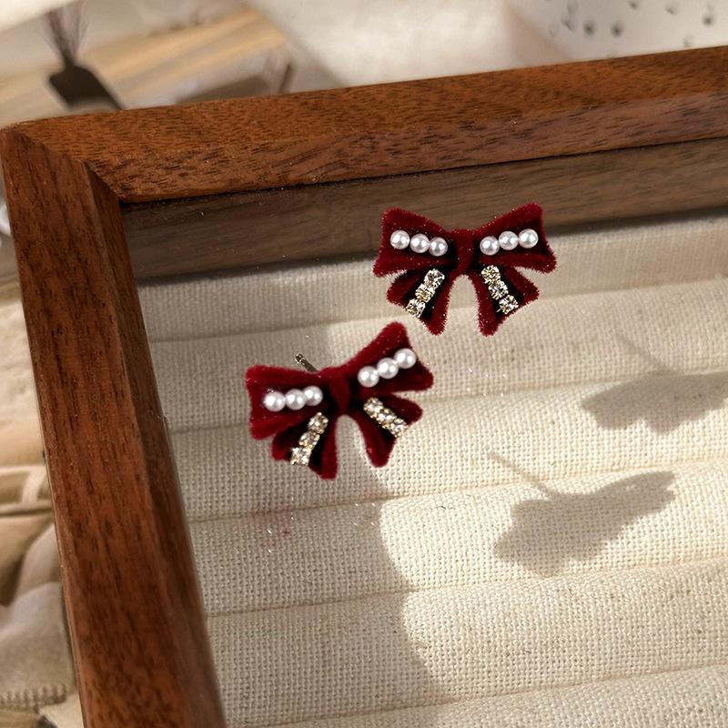 Винтажные серьги-гвоздики с флокирующимся бантом, новые осенне-зимние серьги, серьги с милым темпераментом для девочек красный
