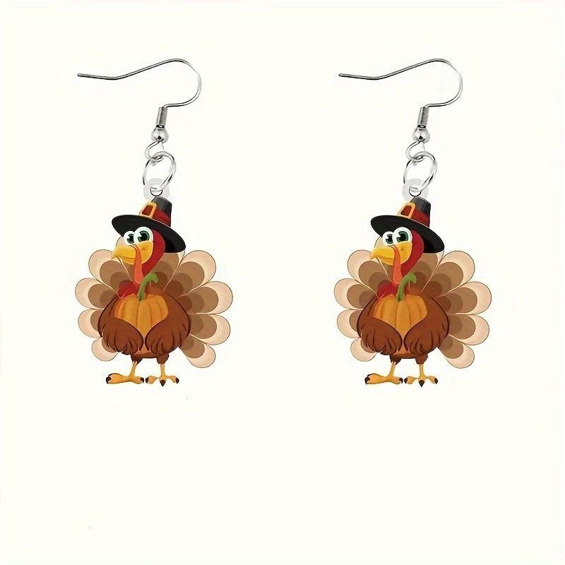 Винтажные серьги из акрила с индейкой на День благодарения, плоские женские праздничные аксессуары для вечеринок и отпуска